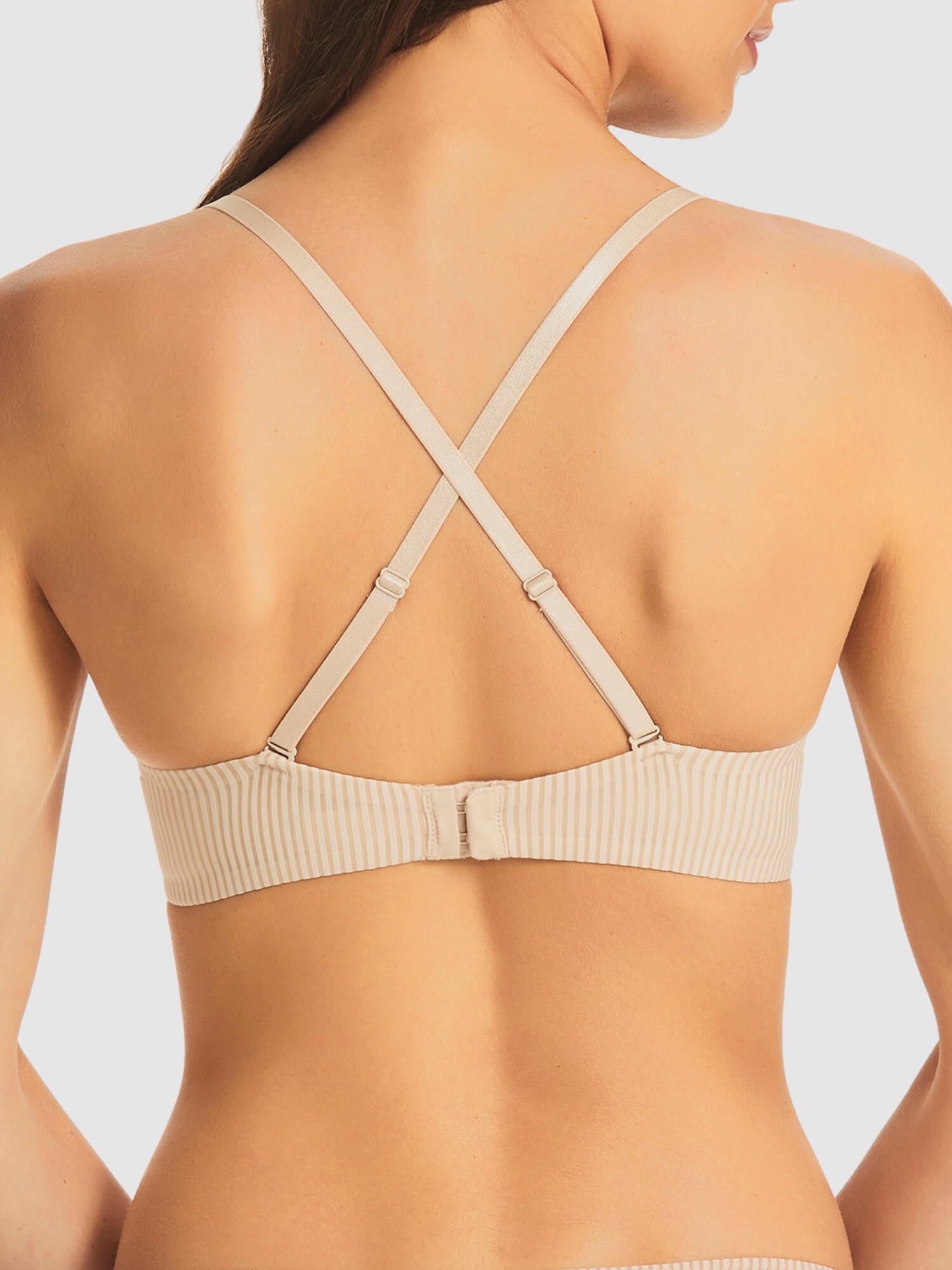 If your band size is too small, your straps will slip off your shoulder. If your band size is too big, you’ll end up tightening the straps to compensate, which will dig into your shoulders. Make sure the straps sit snug against your skin. If the straps are still falling off, consider a different style. Remember, balconette bras have wider-set straps.