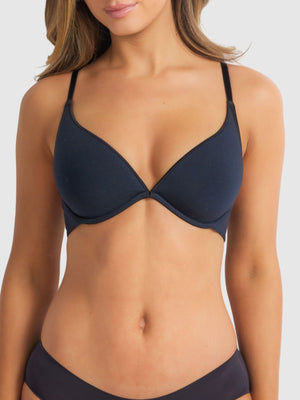 Effortlessly sophisticated, the Cotton Plunge Bra in Black is crafted from premium Australian Cotton for a naturally soft fit. Designed with deep v-neckline, smooth trims and luxe rose gold hardware, this plunge-style bra offers a flattering fit and all-day comfort. Convertible straps allow you to wear it criss-cross for extra versitility.