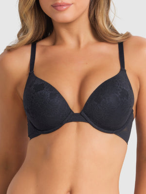 Plunge your way. Make the ultimate statement in our NEW Weightless Padded Plunge Bra in Black. Constructed with beautiful stretch black lace over black moulded cups and fused finishes, it's the perfect blend of femininity and function.