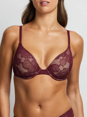 Plunge your way. Make the ultimate statement in our Weightless Padded Plunge Bra in Fig. Constructed with beautiful stretch lace, moulded cups and fused finishes, it's the perfect blend of femininity and function.
